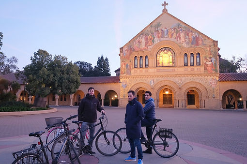 Visite en vélo du campus de Stanford avec nos amis de collège, Noufel et Wahel et restaurant à côté avec Maria et Noufel
